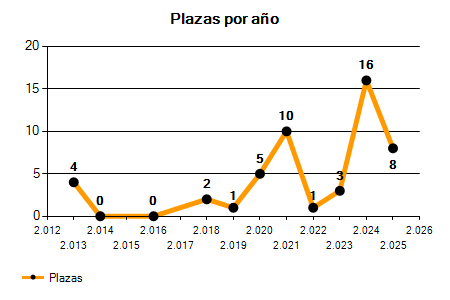 En los siguientes gráficos se puede ver la evolución del número de convocatorias y plazas convocadas por el ayuntamiento de Sant Llorenç des Cardassar de los últimos años pudiéndose observar un crecimiento y una caída del 0,00% desde el año 2013 hasta el 2025 en número de convocatorias y un crecimiento del 100,00% en número de plazas convocadas.