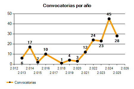 | 45 Convocatorias | 28 Convocatorias | -37,78% |