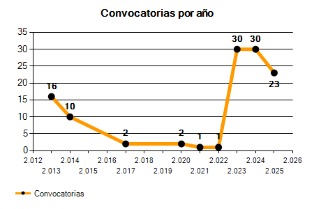 | 30 Convocatorias | 23 Convocatorias | -23,33% |