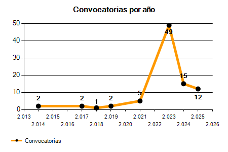 15 Convocatorias | 12 Convocatorias | -20,00% |
