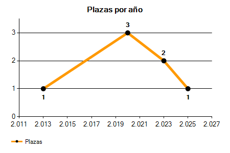 En los siguientes gráficos se puede ver la evolución del número de convocatorias y plazas convocadas por el ayuntamiento de Torreblanca de los últimos años pudiéndose observar una caída del 50,00% desde el año 2013 hasta el 2025 en número de convocatorias y un crecimiento y una caída del 0,00% en número de plazas convocadas.