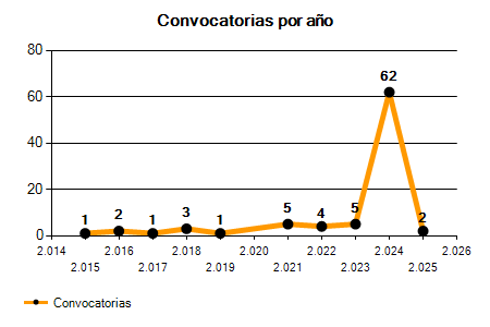 62 Convocatorias | 2 Convocatorias | -96,77% |