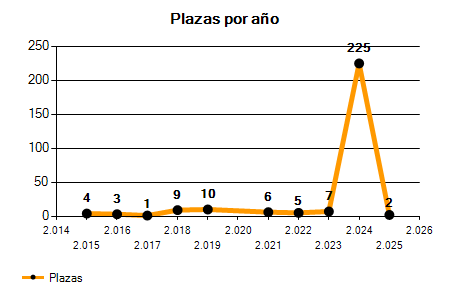 En los siguientes gráficos se puede ver la evolución del número de convocatorias y plazas convocadas por el ayuntamiento de Úbeda de los últimos años pudiéndose observar un crecimiento del 100,00% desde el año 2015 hasta el 2025 en número de convocatorias y una caída del 50,00% en número de plazas convocadas.