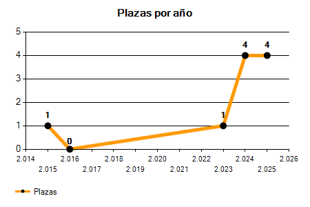 En los siguientes gráficos se puede ver la evolución del número de convocatorias y plazas convocadas por el ayuntamiento de Valls de los últimos años pudiéndose observar un crecimiento del 300,00% desde el año 2015 hasta el 2025 en número de convocatorias y un crecimiento del 300,00% en número de plazas convocadas.