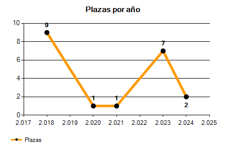 En los siguientes gráficos se puede ver la evolución del número de convocatorias y plazas convocadas por el ayuntamiento de Vilavella (la) de los últimos años pudiéndose observar una caída del 100,00% desde el año 2018 hasta el 2025 en número de convocatorias y una caída del 100,00% en número de plazas convocadas.