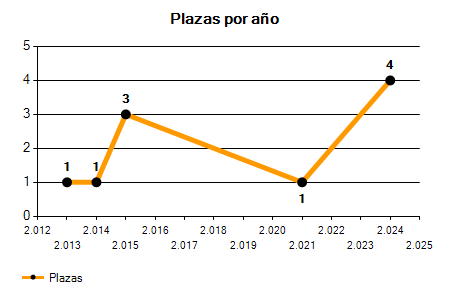 En los siguientes gráficos se puede ver la evolución del número de convocatorias y plazas convocadas por el ayuntamiento de Villanueva de la Reina de los últimos años pudiéndose observar una caída del 100,00% desde el año 2013 hasta el 2025 en número de convocatorias y una caída del 100,00% en número de plazas convocadas.