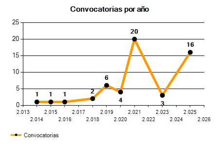 3 Convocatorias | 16 Convocatorias | +433,33% |