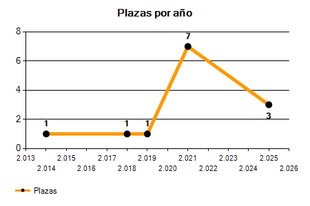 En los siguientes gráficos se puede ver la evolución del número de convocatorias y plazas convocadas por el ayuntamiento de Zaratán de los últimos años pudiéndose observar un crecimiento del 200,00% desde el año 2014 hasta el 2025 en número de convocatorias y un crecimiento del 200,00% en número de plazas convocadas.