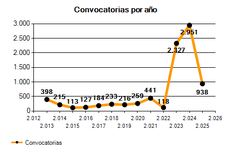 2.951 Convocatorias | 938 Convocatorias | -68,21% |