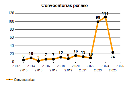 | 111 Convocatorias | 24 Convocatorias | -78,38% |