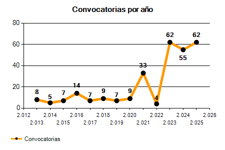 55 Convocatorias | 62 Convocatorias | +12,73% |