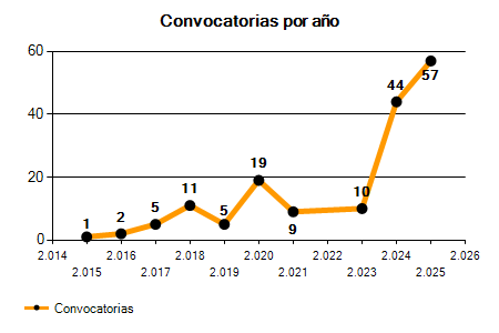 44 Convocatorias | 57 Convocatorias | +29,55% |