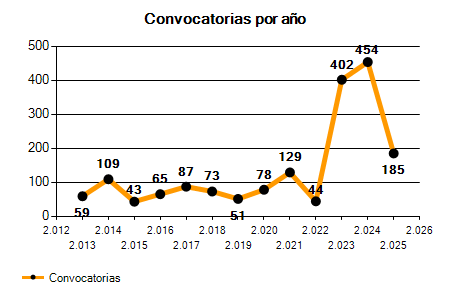 454 Convocatorias | 185 Convocatorias | -59,25% |