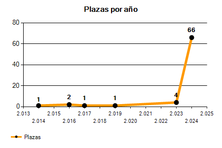 En los siguientes gráficos se puede ver la evolución del número de convocatorias y plazas convocadas por el Cabildo Insular de El Hierro de los últimos años pudiéndose observar una caída del 100,00% desde el año 2014 hasta el 2025 en número de convocatorias y una caída del 100,00% en número de plazas convocadas.