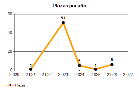 En los siguientes gráficos se puede ver la evolución del número de convocatorias y plazas convocadas por la Comarca de Somontano de Barbastro de los últimos años pudiéndose observar un crecimiento del 200,00% desde el año 2021 hasta el 2026 en número de convocatorias y un crecimiento del 500,00% en número de plazas convocadas.