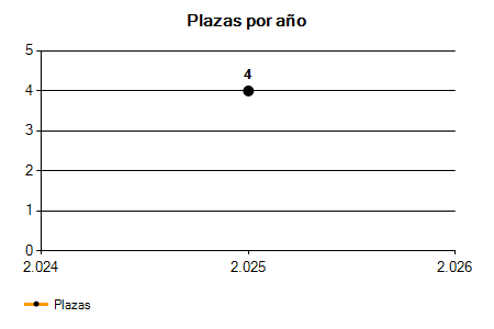 En los siguientes gráficos se puede ver la evolución del número de convocatorias y plazas convocadas por Consejería de Justicia Administración Local y Función Publica de los últimos años pudiéndose observar una caída del 100,00% desde el año 2025 hasta el 2026 en número de convocatorias y una caída del 100,00% en número de plazas convocadas.