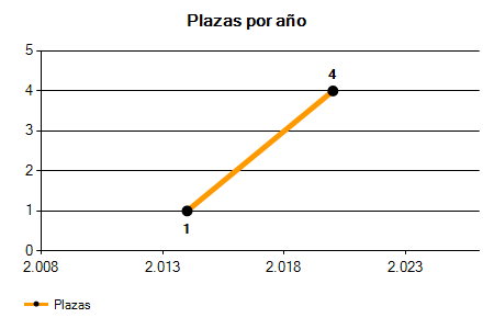 En los siguientes gráficos se puede ver la evolución del número de convocatorias y plazas convocadas por el Consejo Comarcal de la Comarca de Cinco Villas de los últimos años pudiéndose observar una caída del 100,00% desde el año 2014 hasta el 2025 en número de convocatorias y una caída del 100,00% en número de plazas convocadas.