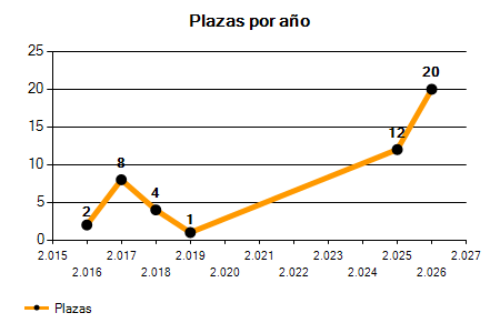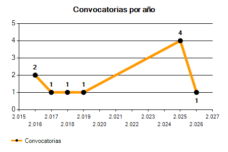 En los siguientes gráficos se puede ver la evolución del número de convocatorias y plazas convocadas por el Consorcio de Extinción de Incendios y Salvamento del Poniente Almeriense de los últimos años pudiéndose observar una caída del 50,00% desde el año 2016 hasta el 2026 en número de convocatorias y un crecimiento del 900,00% en número de plazas convocadas.