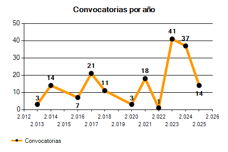 37 Convocatorias | 14 Convocatorias | -62,16% |