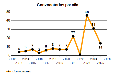 31 Convocatorias | 14 Convocatorias | -54,84% |