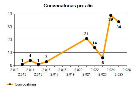 39 Convocatorias | 34 Convocatorias | -12,82% |