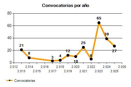 39 Convocatorias | 27 Convocatorias | -30,77% |