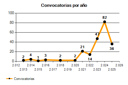 82 Convocatorias | 36 Convocatorias | -56,10% |