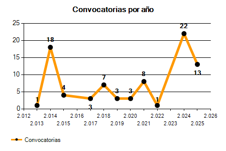 22 Convocatorias | 13 Convocatorias | -40,91% |