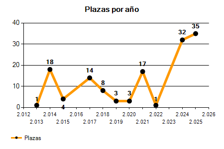 En los siguientes gráficos se puede ver la evolución del número de convocatorias y plazas convocadas por los organismos de la administración local de Lugo de los últimos años pudiéndose observar un crecimiento del 1.200,00% desde el año 2013 hasta el 2025 en número de convocatorias y un crecimiento del 3.400,00% en número de plazas convocadas.
