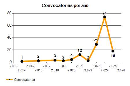 74 Convocatorias | 18 Convocatorias | -75,68% |