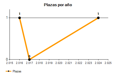 En los siguientes gráficos se puede ver la evolución del número de convocatorias y plazas convocadas por la Mancomunidad de Concejos Llanes-Ribadedeva de los últimos años pudiéndose observar una caída del 100,00% desde el año 2016 hasta el 2025 en número de convocatorias y una caída del 100,00% en número de plazas convocadas.