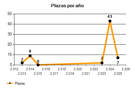 En los siguientes gráficos se puede ver la evolución del número de convocatorias y plazas convocadas por los organismos de la administración local de Navarra de los últimos años pudiéndose observar un crecimiento del 33,33% desde el año 2013 hasta el 2025 en número de convocatorias y un crecimiento del 250,00% en número de plazas convocadas.