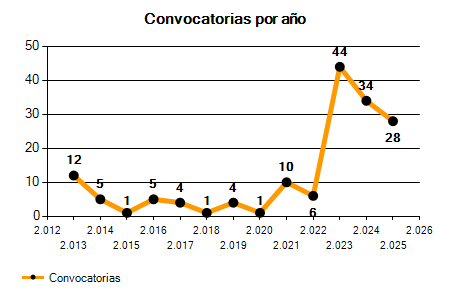 | 34 Convocatorias | 28 Convocatorias | -17,65% |