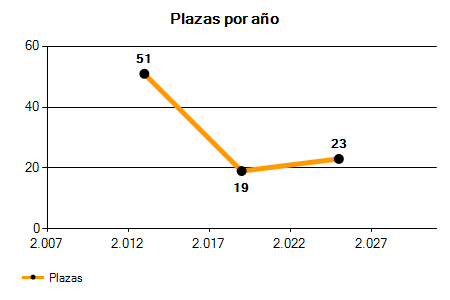 En los siguientes gráficos se puede ver la evolución del número de convocatorias y plazas convocadas por la Universidad de Extremadura de los últimos años pudiéndose observar una caída del 50,00% desde el año 2013 hasta el 2025 en número de convocatorias y una caída del 54,90% en número de plazas convocadas.