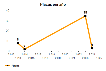 En los siguientes gráficos se puede ver la evolución del número de convocatorias y plazas convocadas por la Universidad de la Laguna de los últimos años pudiéndose observar una caída del 100,00% desde el año 2013 hasta el 2025 en número de convocatorias y una caída del 100,00% en número de plazas convocadas.