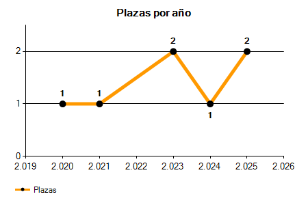 En los siguientes gráficos se puede ver la evolución del número de convocatorias y plazas convocadas para la profesión de Administrativo Tesorería en Sevilla de los últimos años pudiéndose observar un crecimiento del 100,00% desde el año 2020 hasta el 2025 en número de convocatorias y un crecimiento del 100,00% en número de plazas convocadas.