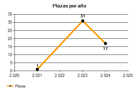 En los siguientes gráficos se puede ver la evolución del número de convocatorias y plazas convocadas para la profesión de Agente de Desarrollo Local en Santa Cruz de Tenerife de los últimos años pudiéndose observar una caída del 100,00% desde el año 2021 hasta el 2025 en número de convocatorias y una caída del 100,00% en número de plazas convocadas.