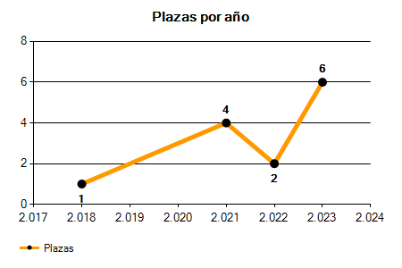 En los siguientes gráficos se puede ver la evolución del número de convocatorias y plazas convocadas para la profesión de Analista Programador en Jaén de los últimos años pudiéndose observar una caída del 100,00% desde el año 2018 hasta el 2025 en número de convocatorias y una caída del 100,00% en número de plazas convocadas.