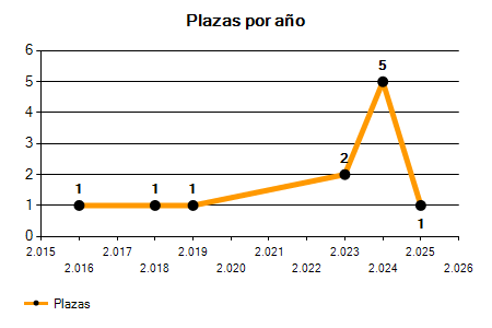En los siguientes gráficos se puede ver la evolución del número de convocatorias y plazas convocadas para la profesión de Animador en Madrid de los últimos años pudiéndose observar un crecimiento y una caída del 0,00% desde el año 2016 hasta el 2025 en número de convocatorias y un crecimiento y una caída del 0,00% en número de plazas convocadas.