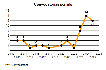 | 14 Convocatorias | 12 Convocatorias | -14,29% |
