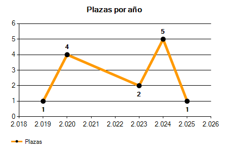En los siguientes gráficos se puede ver la evolución del número de convocatorias y plazas convocadas para la profesión de Arquitecto en Burgos de los últimos años pudiéndose observar un crecimiento y una caída del 0,00% desde el año 2019 hasta el 2025 en número de convocatorias y un crecimiento y una caída del 0,00% en número de plazas convocadas.