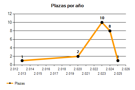 En los siguientes gráficos se puede ver la evolución del número de convocatorias y plazas convocadas para la profesión de Arquitecto en Castellón de la Plana de los últimos años pudiéndose observar un crecimiento y una caída del 0,00% desde el año 2013 hasta el 2025 en número de convocatorias y un crecimiento y una caída del 0,00% en número de plazas convocadas.