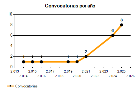 | 6 Convocatorias | 8 Convocatorias | +33,33% |