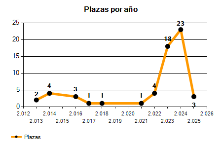 En los siguientes gráficos se puede ver la evolución del número de convocatorias y plazas convocadas para la profesión de Arquitecto en Tarragona de los últimos años pudiéndose observar un crecimiento del 100,00% desde el año 2013 hasta el 2025 en número de convocatorias y un crecimiento del 50,00% en número de plazas convocadas.