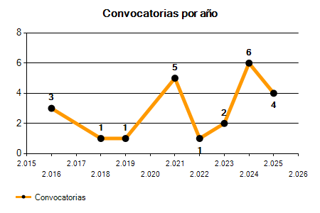 | 6 Convocatorias | 4 Convocatorias | -33,33% |