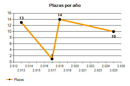 En los siguientes gráficos se puede ver la evolución del número de convocatorias y plazas convocadas para la profesión de Asistente Social en Zamora de los últimos años pudiéndose observar un crecimiento y una caída del 0,00% desde el año 2013 hasta el 2025 en número de convocatorias y una caída del 23,08% en número de plazas convocadas.