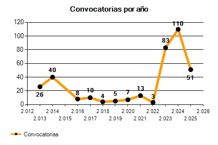 110 Convocatorias | 51 Convocatorias | -53,64% |