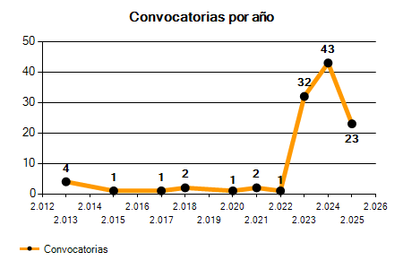 | 43 Convocatorias | 23 Convocatorias | -46,51% |