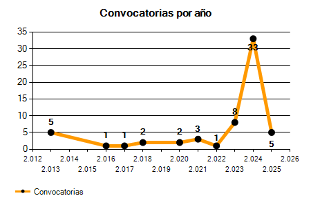 | 33 Convocatorias | 5 Convocatorias | -84,85% |