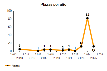 En los siguientes gráficos se puede ver la evolución del número de convocatorias y plazas convocadas para la profesión de Auxiliar administrativo en Lugo de los últimos años pudiéndose observar un crecimiento y una caída del 0,00% desde el año 2013 hasta el 2025 en número de convocatorias y un crecimiento del 140,00% en número de plazas convocadas.
